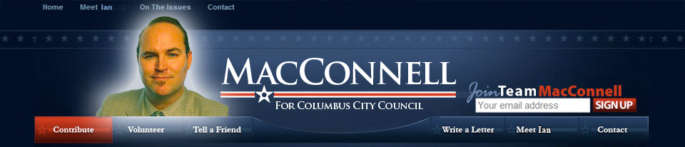 About Ian MacConnell By the age of twelve I had already lived in four states before my family settled in Bay Village, Ohio, outside of Cleveland. At age seventeen, out of love of country and to pay for my college education, I joined the Ohio National Guard. I attended basic training during the summer between my junior and senior years of high school and returned for advanced “MOS” training upon high school graduation. I attended The Ohio State University with aspirations of becoming an accountant. As with most adolescents, my interests changed and so did my major. In my junior year my family moved to Indiana, so I followed them and finished a degree in communications at Purdue Calumet, just outside of Gary. My six-year commitment with the National Guard ended in 1994, and I moved back to Columbus to help a friend manage his business in the Short North. This was an excitng time when the area was just starting to organize. After helping him to create, arguably, the best studio of its kind in the city, I decided to change focus. A fascination with technology took hold, and I dedicated my time to understanding and authoring content for the emerging Internet. After several years living in Columbus as an entrepreneur, I started working full time for the Ohio Supercomputer Center, where I work today as Creative Director. I enjoy working so close to advanced technology and research, and look forward to seeing it create the jobs of our future. My interest in public policy and service is rooted in the belief that we are responsible for our democracy and our government. I had watched the start of the first Iraq war from my then apartment at 10th Avenue and High Street and wondered if the time had come to serve my country in combat. My unit was temporarily mobilized, but Operation Desert Storm was over almost as quickly as it had begun. Leading up to the current Iraq war I was confused by the Bush administration’s decision to go to war with evidence that to me it just didn't add up. I did the only thing I could think of and asked friends and family to join hundreds of other Columbus citizens to march against the start of the war, not against my country, which I love deeply. This is our government, and if you believe that it isn't moving in the right direction, you have to speak up. A year later, I decided to run for University Area Commissioner. I walked door to door and had conversations with people on their concerns for our neighborhood, city and country. I was elected University Area Commissioner and was later elected President of the commission. Those conversations with my neighbors and my fellow commissioners have continued and are the foundation for the ideas I want to bring to Columbus City Council. Family is so very important, and I am so proud of mine. My loving wife Christa works for The Ohio State University, and her love and support for me cannot be overstated. She brings beauty into my world every day, and I am truly lucky to have her in my life. My father Bob MacConnell started his non-profit career as a professional Boy Scout in California and retired as president of the United Way of Broward County, Florida. My father instilled in me a love for my community, and need to help those in need. He also taught me early on to speak out for equality of all people because it is the right thing to do. Today he spends his days helping non-profit organizations in these tough economic times and fishing in South Carolina. My mother Janette MacConnell taught me the importance of education and the incredible patience it takes to be a professional educator. She taught her first class at Indianola Elementary in the University District, later went on to teach inner city schoolchildren in Gary, Indiana, and teaches today at St. Josephs Montessori in Italian Village. She is without a doubt the kindest person I know. My younger brother Ben helps to organize congregations all over the country for positive social change, and my youngest brother Rob is a teacher in Grove City Schools. They are both married to wonderful wives and have beautiful children. I was incredibly lucky to have them to grow up with, and today they have made me the proudest uncle alive.